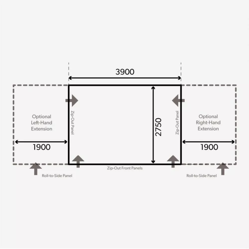 Um noch mehr Wohnraum oder Sonnenschutz zu erhalten empfehlen wir das passende, optional erhältliche Front-Vordach oder einen praktischen Seitenanbau. Das Front-Vordach lässt sich mittels Reissverschluss einfach am Vorzelt befestigt.