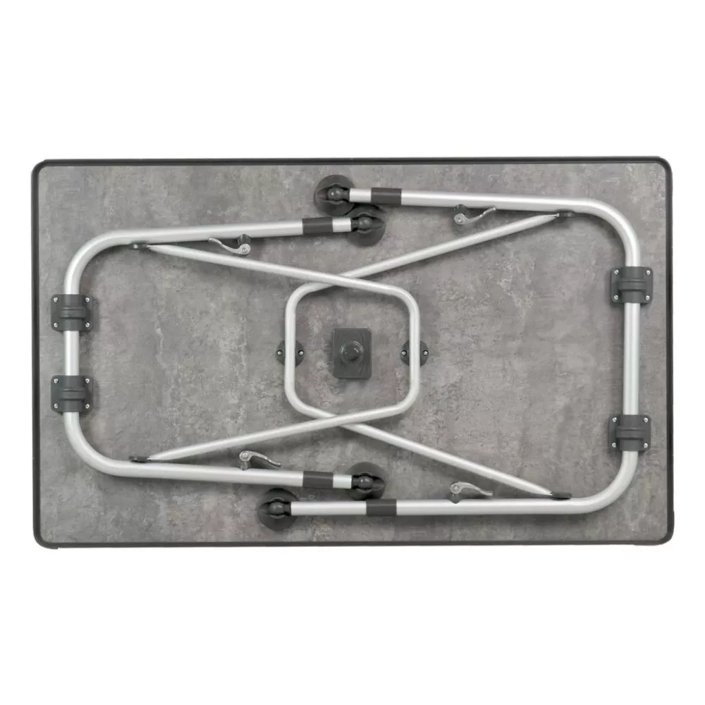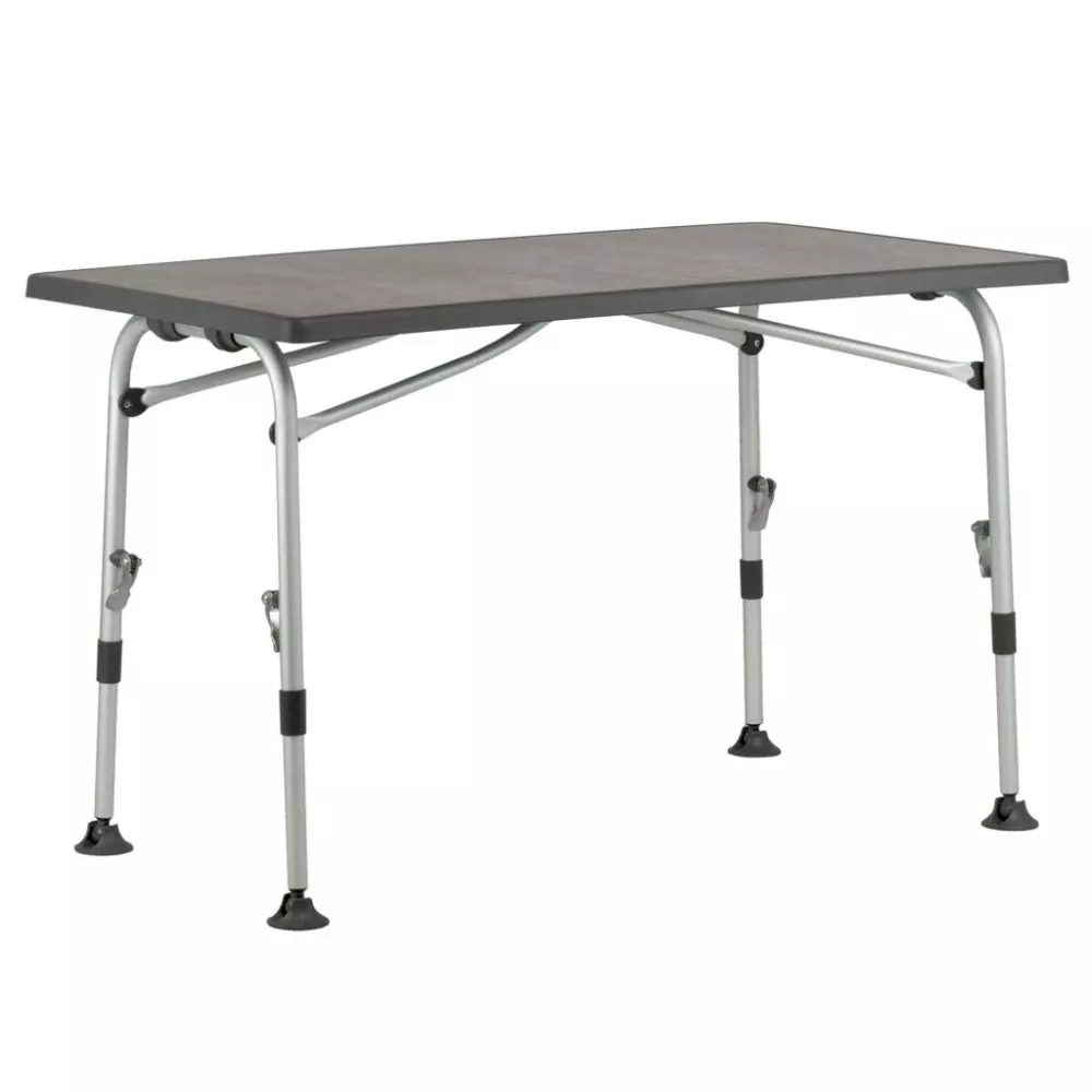 Mit einem stabilen Gestell aus Aluminium-Rundrohr und einer wetterfesten Tischplatte in elegantem Design erscheint der standfeste Camping-Klapptisch Westfield Superb 100. Alle 4 Tischbeine sind einzeln und stufenlos höhenverstellbar. Ausgestattet mit einer einfach zu bedienenden Exzenterverriegelung mit Schnellverschluss für die problemlose Höhenverstellung. Die Tellerfüsse mit Kugelgelenk ermöglichen einen festen Stand, schonen den Vorzeltteppich und verhindern das Einsinken auf weichem Boden.