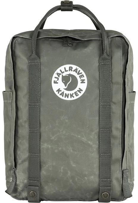Das Material ist aus Pine Weave, einem einzigartigen Material, das unter Verwendung nachhaltigerer Methoden aus zertifizierten schwedischen Bäumen gefertigt wird, die in der Nähe von Fjällrävens Heimatort Örnsköldsvik wachsen. Das Gewebe ist gewachst, wodurch es einen natürlichen, melierten Effekt erhält. Der Rucksack verbindet die Schlichtheit des Kånken mit sorgfältig abgeänderten Details, die nur dem Tree-Kånken eigen sind: ein reflektierendes Logo, eine flache Tasche vorne und ein Riemen unten, mit dem Ausrüstung befestigt werden kann.