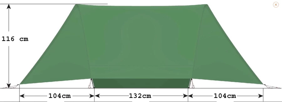- aufzustellen mit 2 Trekkingstöcken (nicht im Lieferumfang – oder ähnlichen Stangen)