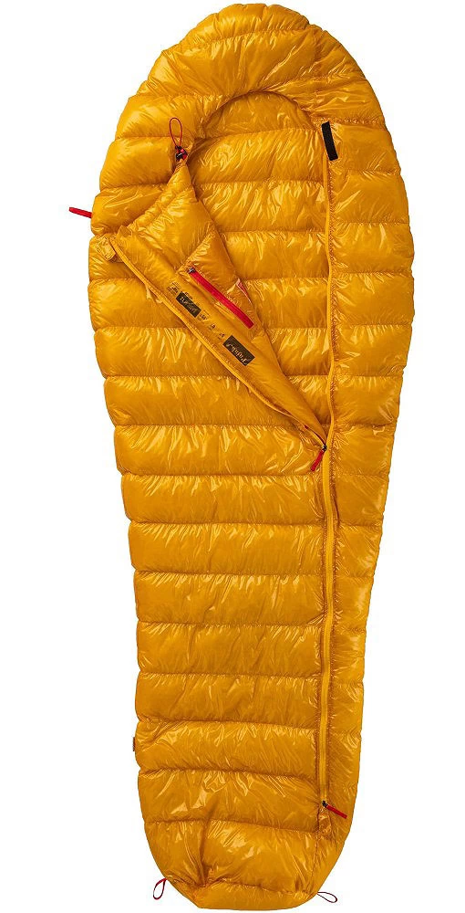 Sehr leichter Daunenschlafsack für Touren in den drei wärmeren Jahreszeiten. Temperaturbereich bis 5°C, unempfindliche Menschen bis an die 0°C – bei nur einem halben Kilo Gewicht und minimalem Packmaß