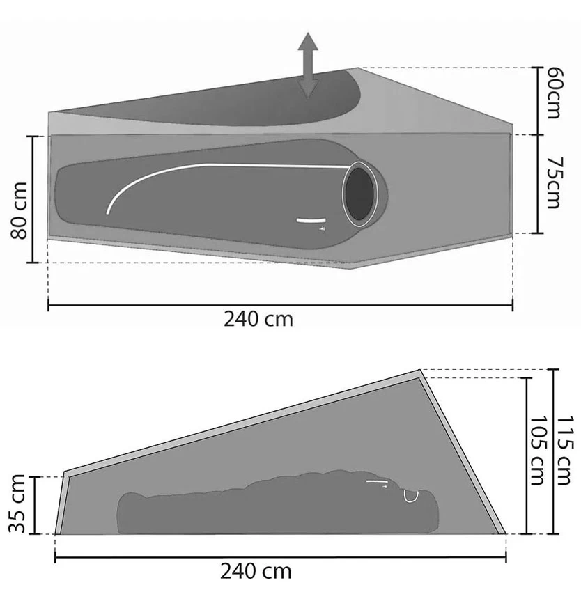 Außenzelt: 245 x 125 x 105 cm (L x B x H)