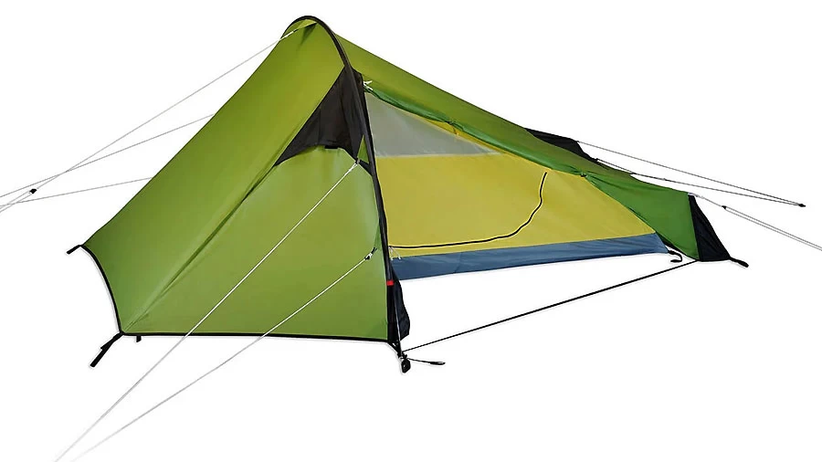 Ein solides, 1.7 kg leichtes 1-Personenzelt in klassischer Doppeldach-Bauweise. Sehr schnell aufgebaut durch im Aussenzelt hängendes Innenzelt und 1-Bogen-Alu-Gestänge. Sehr robust durch (für diesen Preis) hervorragende Materialien. Reichlich Platz für Gepäck, im Innenzelt wie auch in der Apsis vor dem Eingang. Kleines Packmaß durch kurze Gestängesegmente.