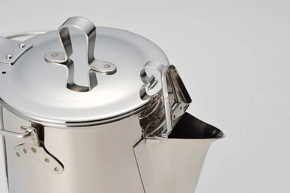 Dies ist eine Kaffeekanne für den Einsatz am offenen Feuer, auf einem Grillofen, oder auf einem Holz- oder Kohleherd. Megastabil, aus 0.7mm Edelstahlblech – hält ein Leben lang. Sehr edel aussehend und mit einer Menge sehr ungewöhnlicher und sehr aufwändiger Detaillösungen für angenehme Nutzung. Ein Highlite von SnowPeak… .