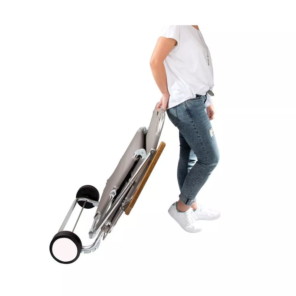 Die universell einsetzbare Strandliege Frankana Freiko Beach Trolley ist bequem für deinen Strandausflug und bietet dir zugleich eine Transportmöglichkeit für deinen Strandzubehör. Sie besteht aus einem leichtem Aluminiumgestell mit wetterfester, textilener Bespannung und ihre Armlehnen sind aus Bambus. Zusätzlich verfügt sie über rostfreie Edelstahlbeschläge.