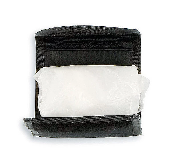Kleine steif gepolsterte Gürteltasche, ursprünglich gedacht bei Einsatzkräften für Einmal-Handschuhe. Auch für sonstige flach verstaubare Klein-Ausrüstungsteile