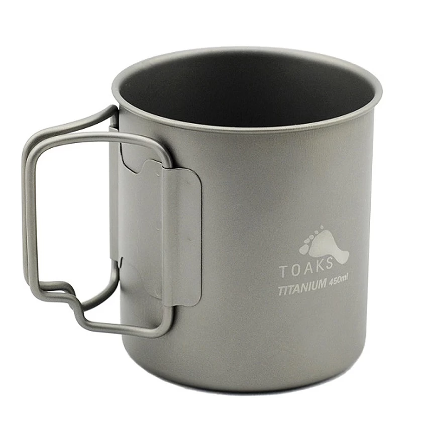 -Ein ultraleichter Trinkbecher aus Titanium mit 450 ml max. Volumen. Kann auch als Mini-Kochtopf genutzt werden.