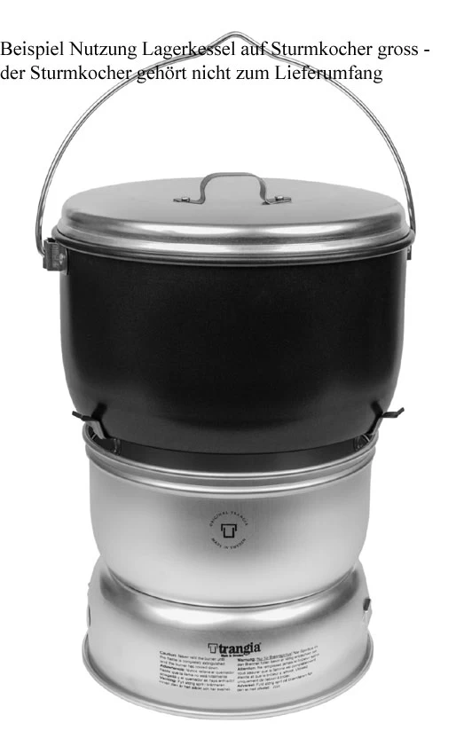 Der Deckel ist nicht beschichtet - In den Topf passen alle Varianten des grossen Trangia-Sturmkochers hinein. Der Topf ist deshalb die ideale Ergänzung zum Sturmkocher für Gruppen. Wenn Sie den Sturmkocher im Topf transportieren, nutzen Sie bitte Spültücher oder sonstige Tücher zur Verhinderung von Kratzern