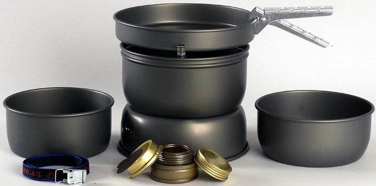 Das erreicht Trangia durch Verwendung einer neuen Aluminium-Legierung, die 50% fester als gewöhnliches Alu ist, was dünneres Material und damit ca. 25% Gewichtsersparnis des Sets ermöglicht: