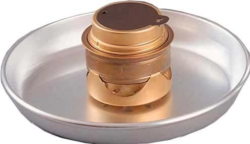 Diese wird mit Spiritus benetzt, der entzündet von unten den Brenner aufheizt und den darin befindlichen Brennstoff zu „voller Leistung“ bringt.