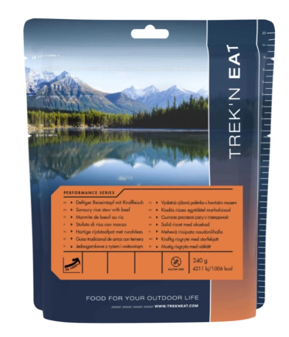 Trek’n Eat ist gefriergetrocknete Spezialnahrung, die bei Reisen, Expeditionen, auf Booten und bei Ausflügen in die Natur als Fertiggericht im Wasser aufbereitet wird. Diese Version mit mehr Joule/Kalorien für Menschen mit höherem Energiebedarf – bei körperlicher Anstrengung oder Kälte.