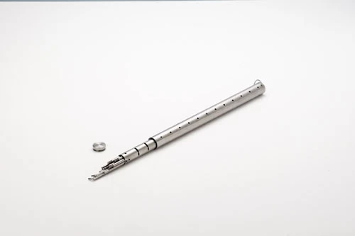 Der ‚Grilliput‘ ist zusammengelegt nur 28,9 cm lang und an der breitesten Stelle nur 2,8 cm (Rohrdurchmesser ist 2,2 cm).