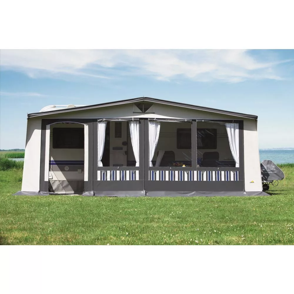 Das Vorzelt DWT Tango 240 ist ein Wohnwagenvorzelt für Dauercamper. Die umfangreiche Ausstattung dieses Vorzeltes und funktionelle Detaillösungen erfüllen die Erwartungen der anspruchsvollen und erfahrenen Camper. Am Platzangebot soll es nicht scheitern. Einfach kompromisslos.